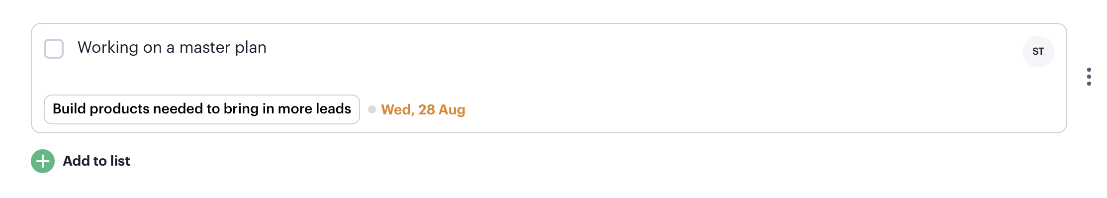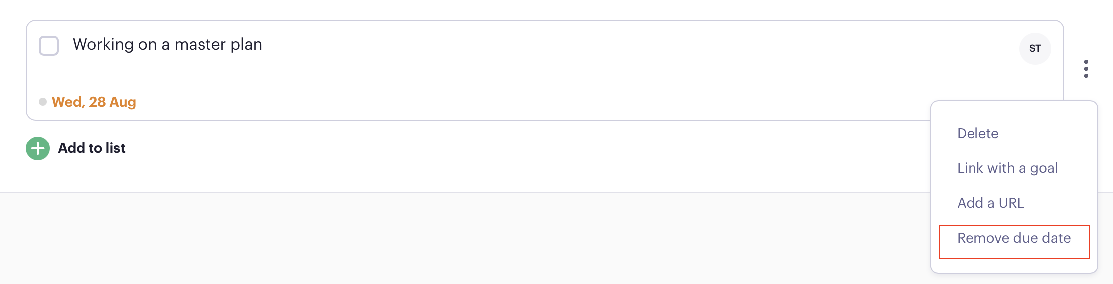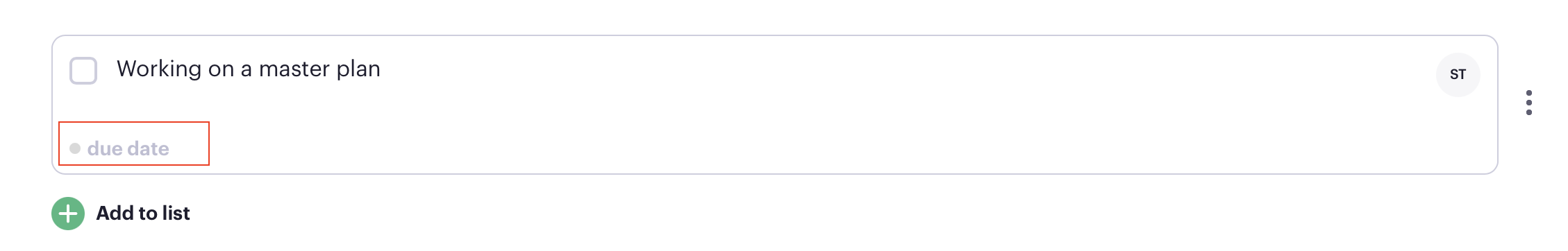 Due dates can be easily added using the calendar icon or removed using the three-dot menu.